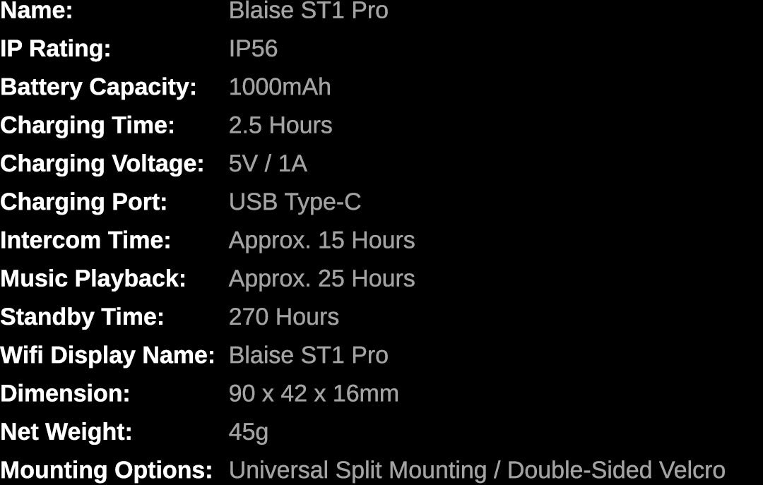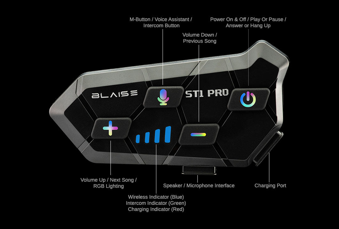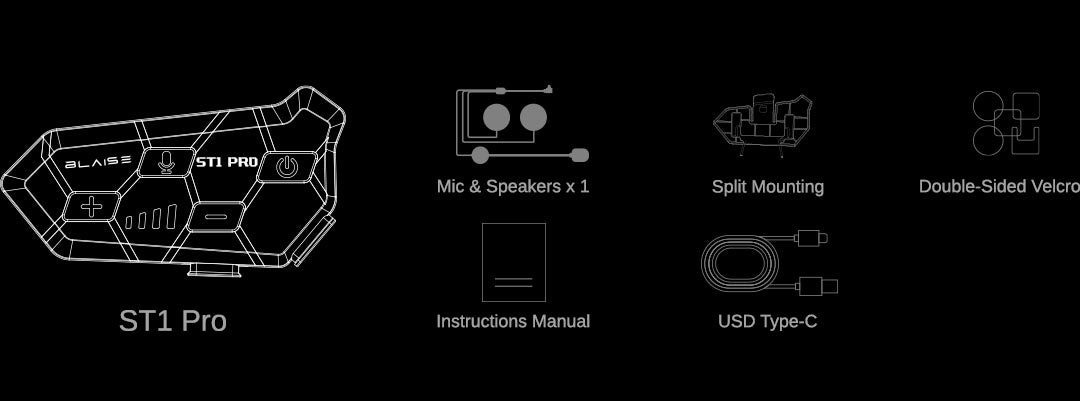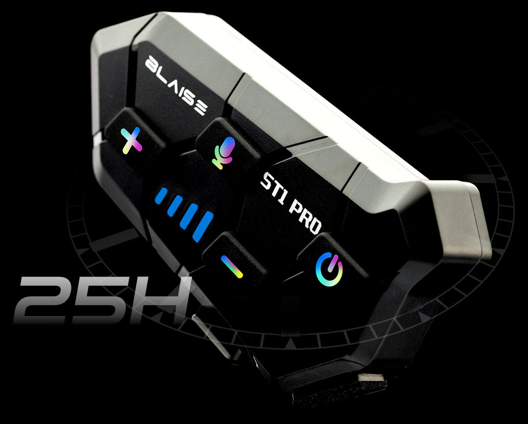 With a 1000 mAh battery, the ST1 Pro gives you 15 hours of intercom use and up to 25 hours of music playback on a single charge.