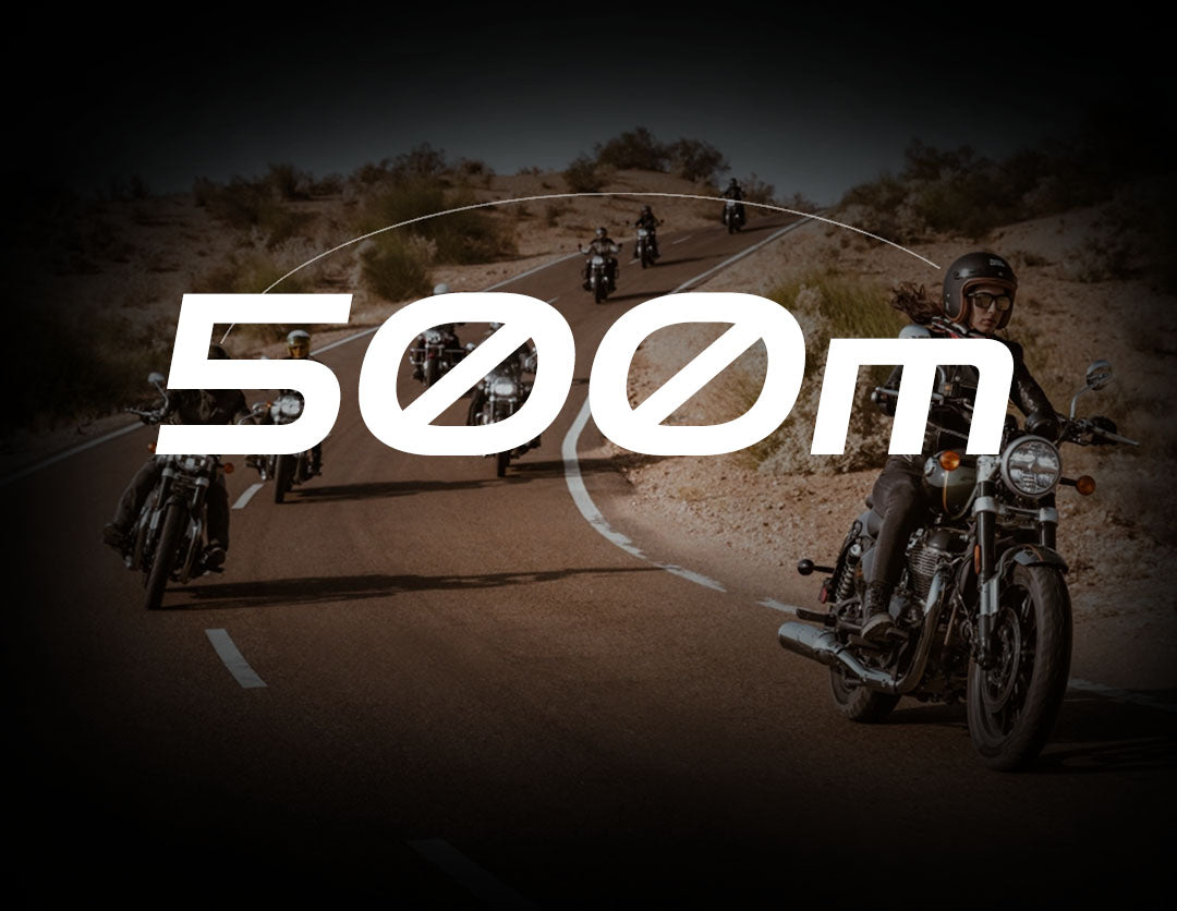 Stay connected up to 500 meters with a dual-answer intercom, music sharing, and navigation guidance that work together seamlessly.