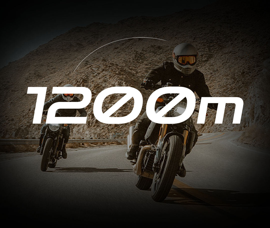 The intercom range of up to 1200 meters is based on ideal conditions with no obstructions.Actual performance may vary depending on terrain, traffic, and environmental factors.
