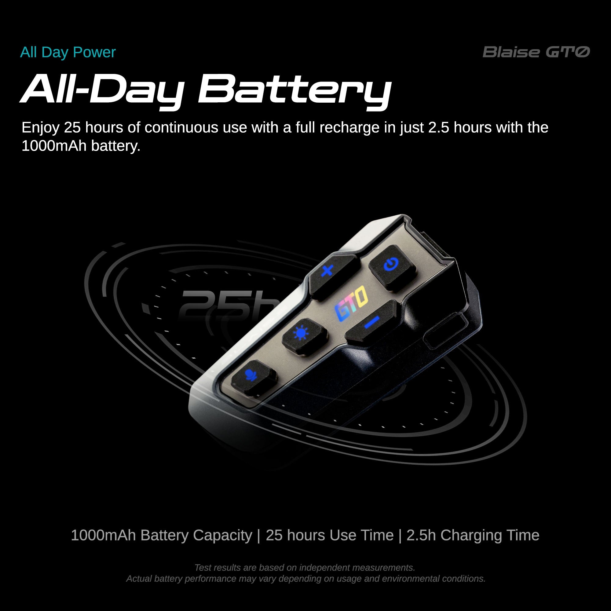 Enjoy 25 hours of continuous use with a full recharge in just 2.5 hours.