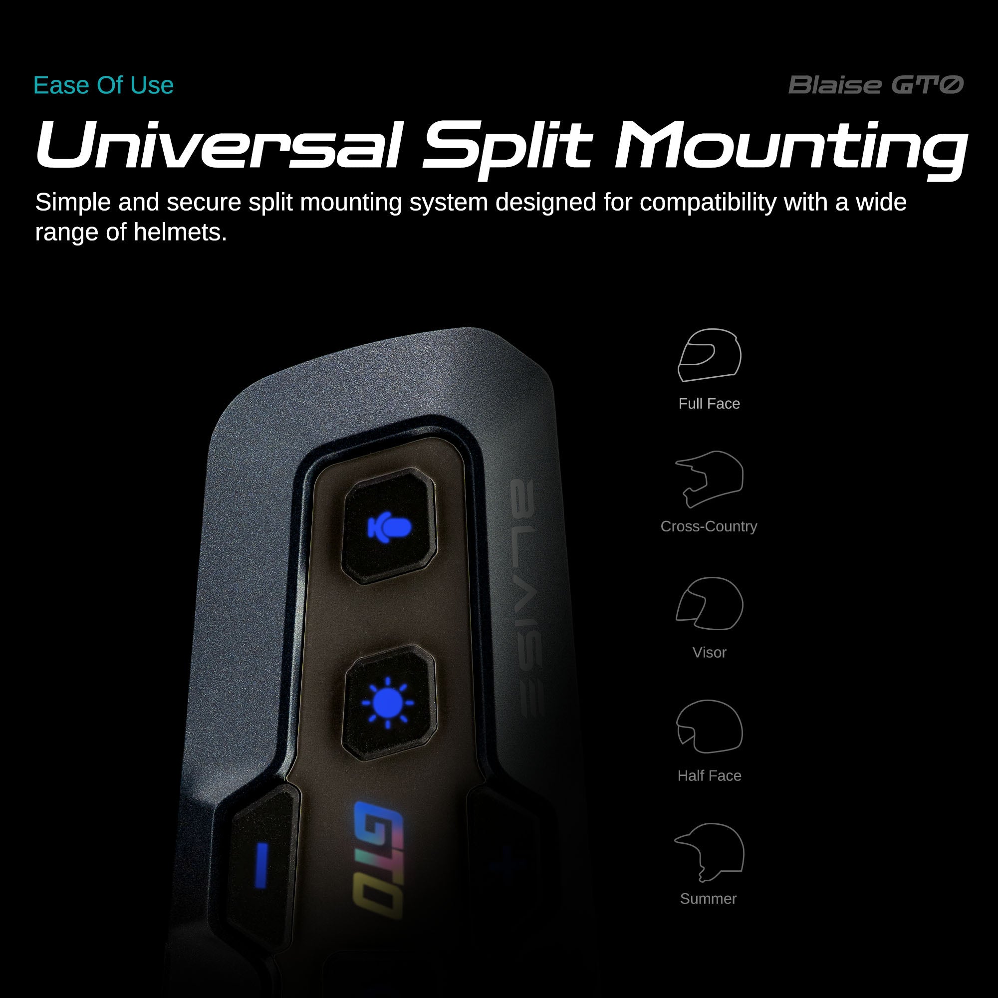 Simple and secure split mounting system designed for compatibility with a wide range of helmets.