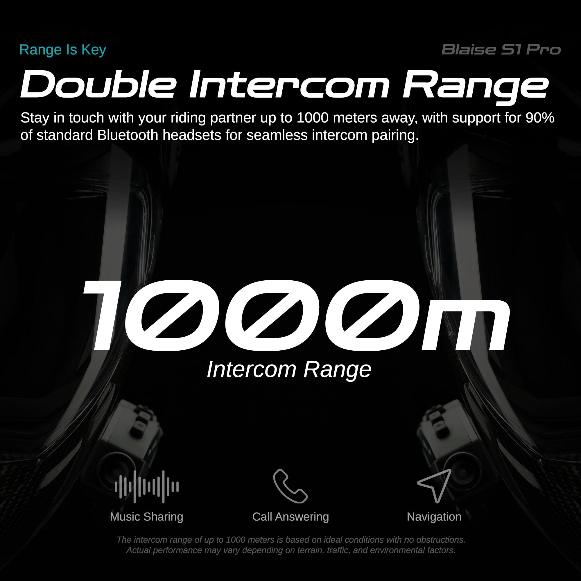 Stay in touch with your riding partner up to 1000 meters away, with support for 90% of standard Bluetooth headsets for seamless intercom pairing.