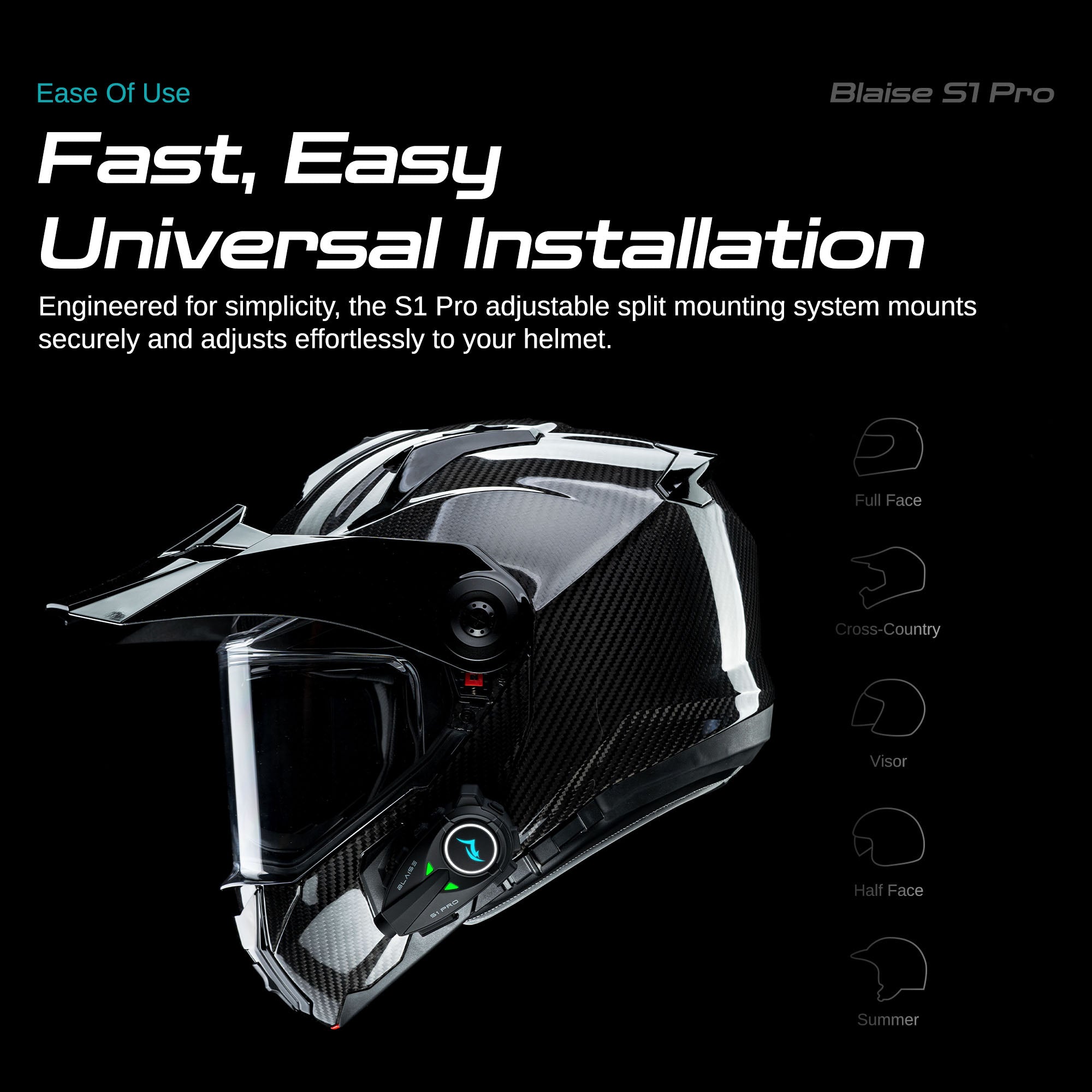 Engineered for simplicity, the S1 Pro split mounting system mounts securely and adjusts effortlessly to your helmet.