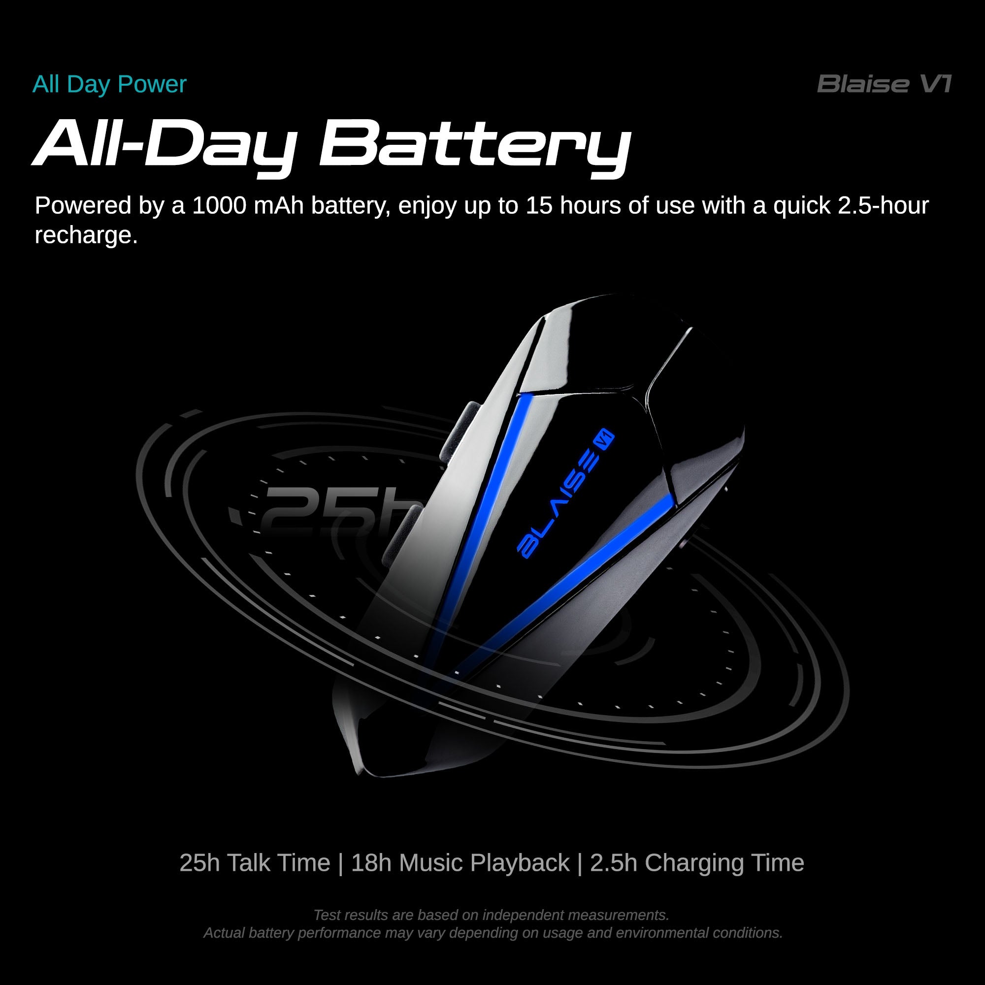 Ride with confidence thanks to a 1000 mAh battery that provides up to 25 hours of intercom time or 18 hours of music playback, with a quick 1.5-hour recharge.
