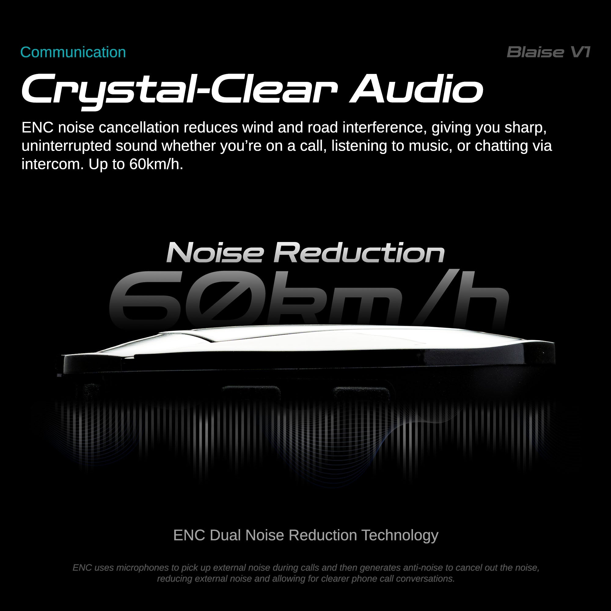 ENC noise cancellation reduces wind and road interference, giving you sharp, uninterrupted sound whether you’re on a call, listening to music, or chatting via intercom. Up to 60km/h.