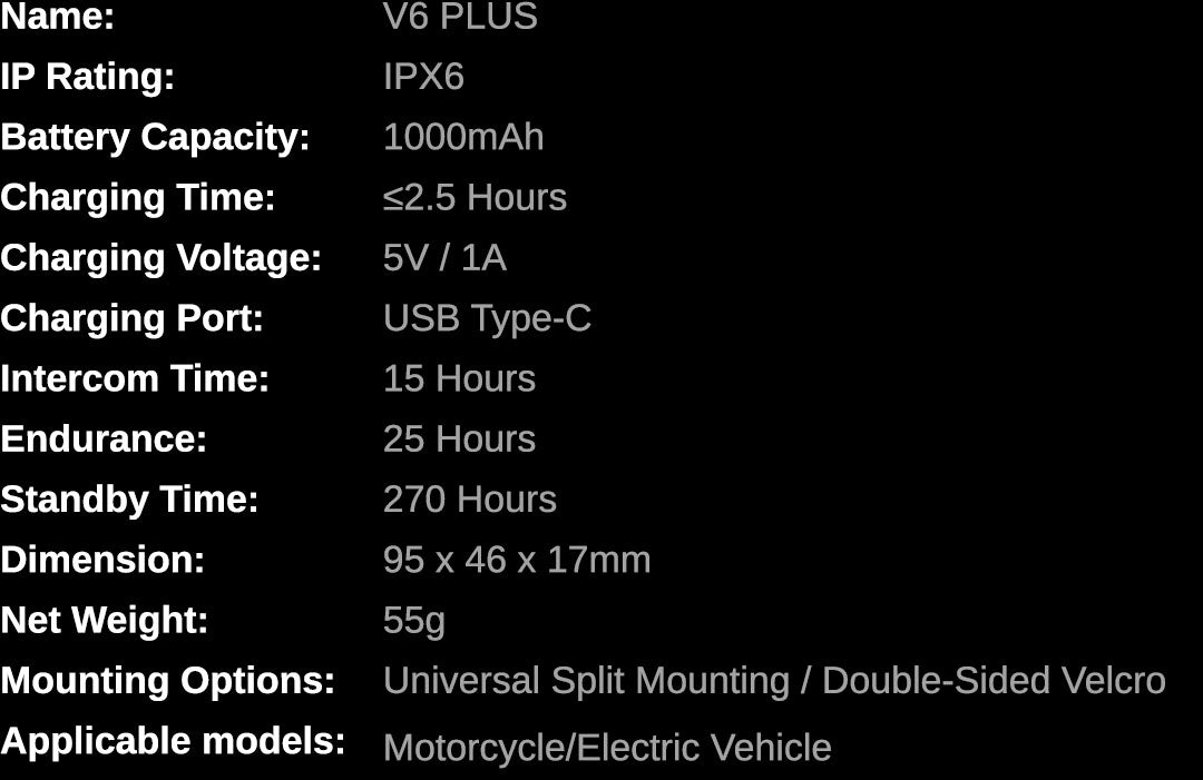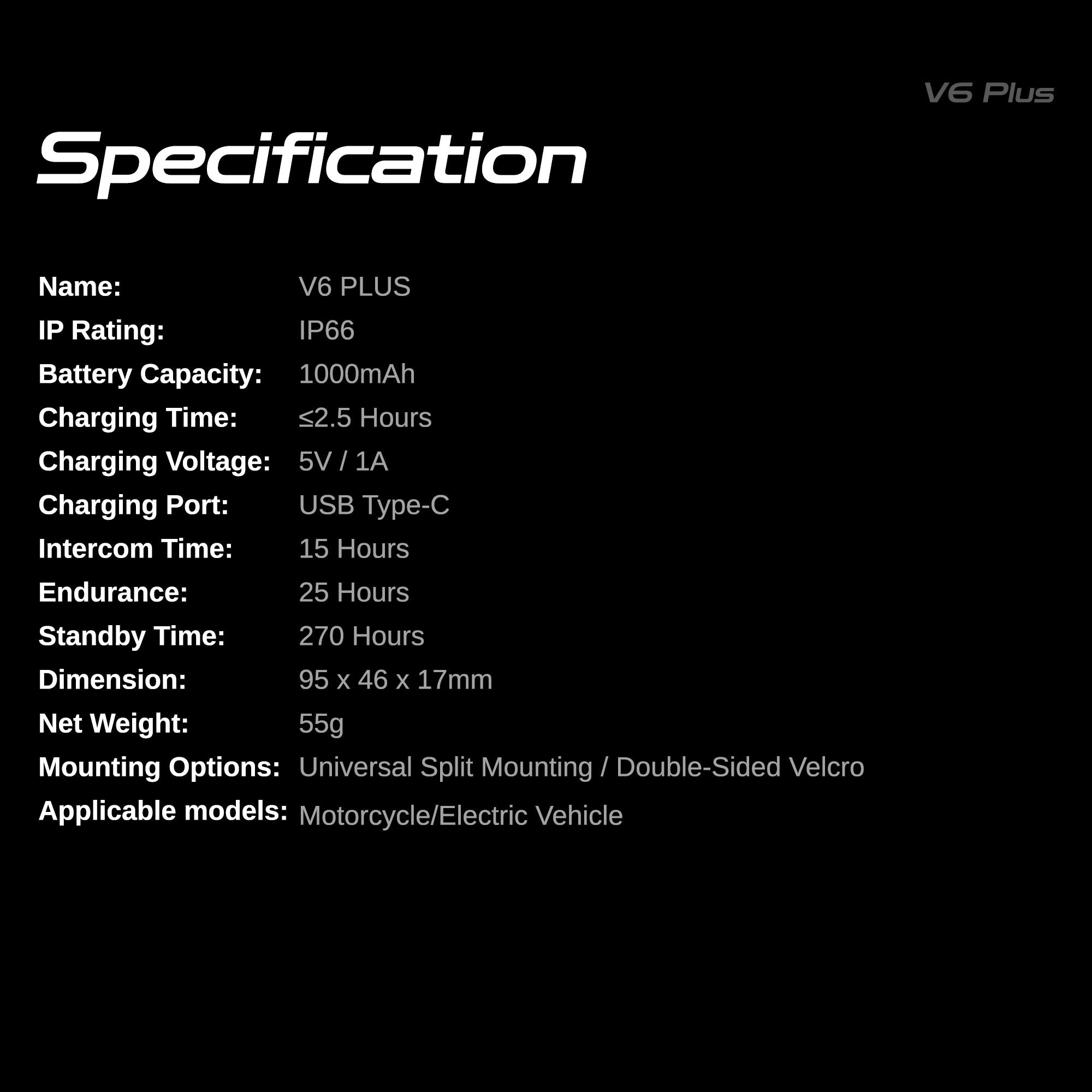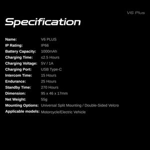 With IPx6 dust and water resistance, the V6 Plus is ready for rain, wind, and whatever the road throws at you.