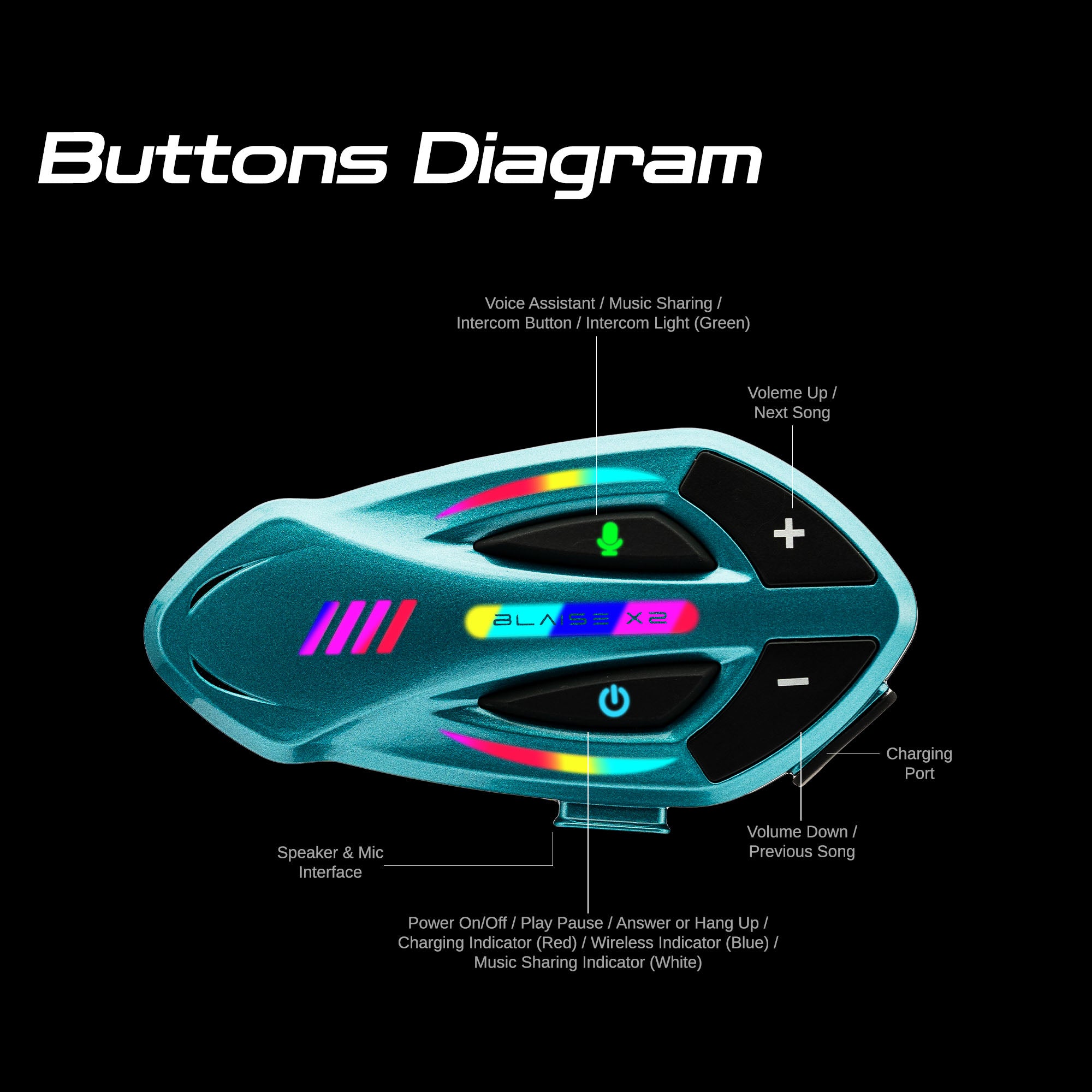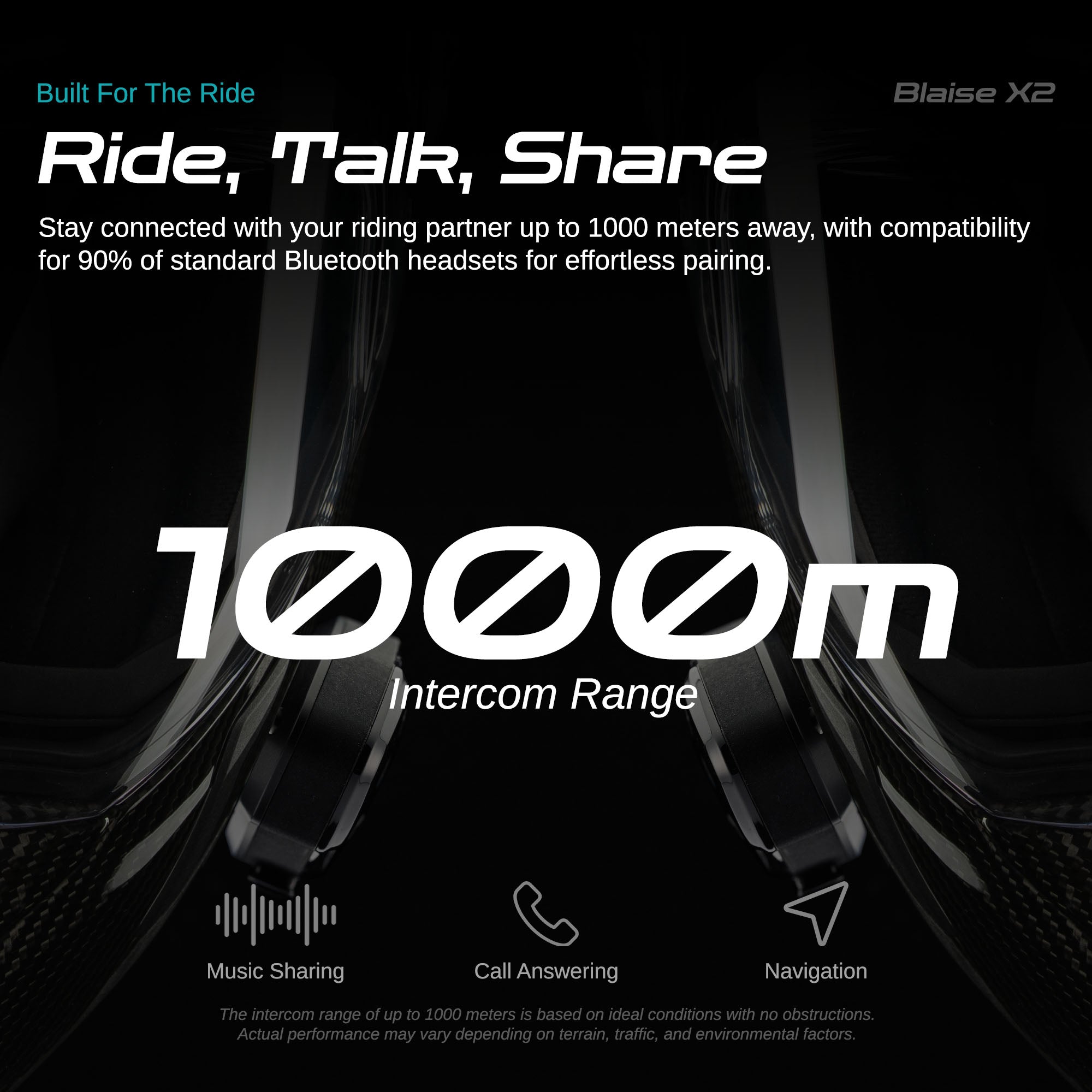 The intercom range of up to 1000 meters is based on ideal conditions with no obstructions. Actual performance may vary depending on terrain, traffic, and environmental factors.