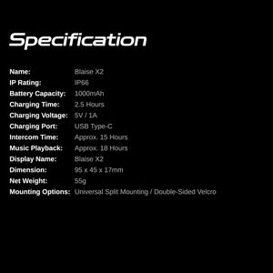 With up to 18 hours of use and a quick 2.5-hour full recharge, the X2 is ready for long rides.